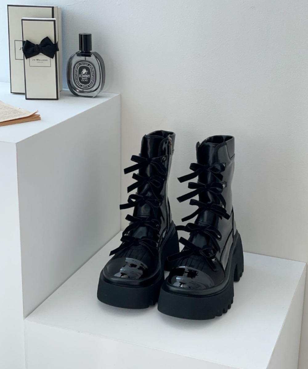 CHIC GLOSSY RIBBONED BOOTS (DF/5A)