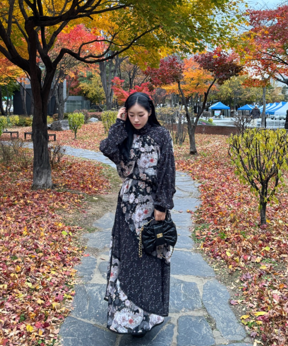 VINTAGE FLORAL CHIFFON TOP & SKIRT SET (DF/1A DF/2A)